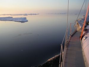 passage, des cristaux de glace apparaissent sur le pont. Le pack