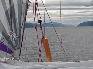 We go down a section of the Loch Ness with our colorful spinnaker,