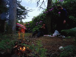 across the flames, we lay down on the soft moss and wait for