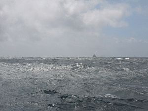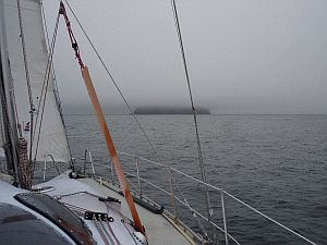 The only thing we see, approching the island shortly after sunrise,